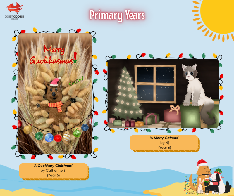 Primary Years - ‘A Quokkary Christmas’ by Catherine S (Year 5) & ‘A Merry Catmas’ by Nj (Year 6)